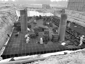 一个个小储水器组合成为巨大的储水罐,埋在地下。